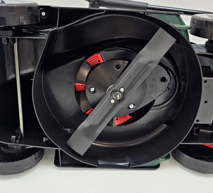 3-stopniowa regulacja wysokości koszenia. Uchwyt posiada zintegrowaną 3-stopniową dźwignię do regulacji wysokości koszenia w zakresie 30–60 mm