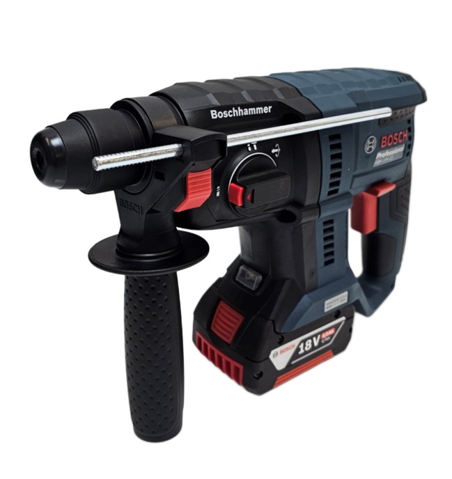 Wyjątkowo trwałe, mocne urządzenie do ciężkich prac budowalnych Bosch o mocy 550W, sile udaru 2J, prędkości obrotowej 0-2300 obr/min i uchwycie wiertarskim SDS Plus, stosowany w młotach udarowo-obrotowych klasy 2-4kg. Urządzenie pozwala na pewne wiercenie w stali i drewnie bez udaru i betonie z udarem oraz dłutowanie po zablokowaniu obrotów.
