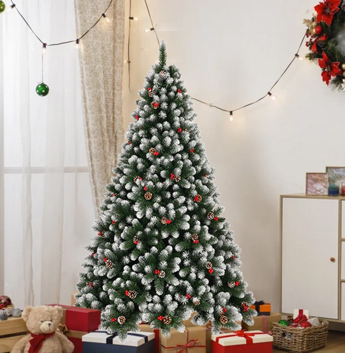 Choinka ośnieżona z szyszkami StarryLights 210 cm x 128 cm – luksusowa, gęsta i naturalna