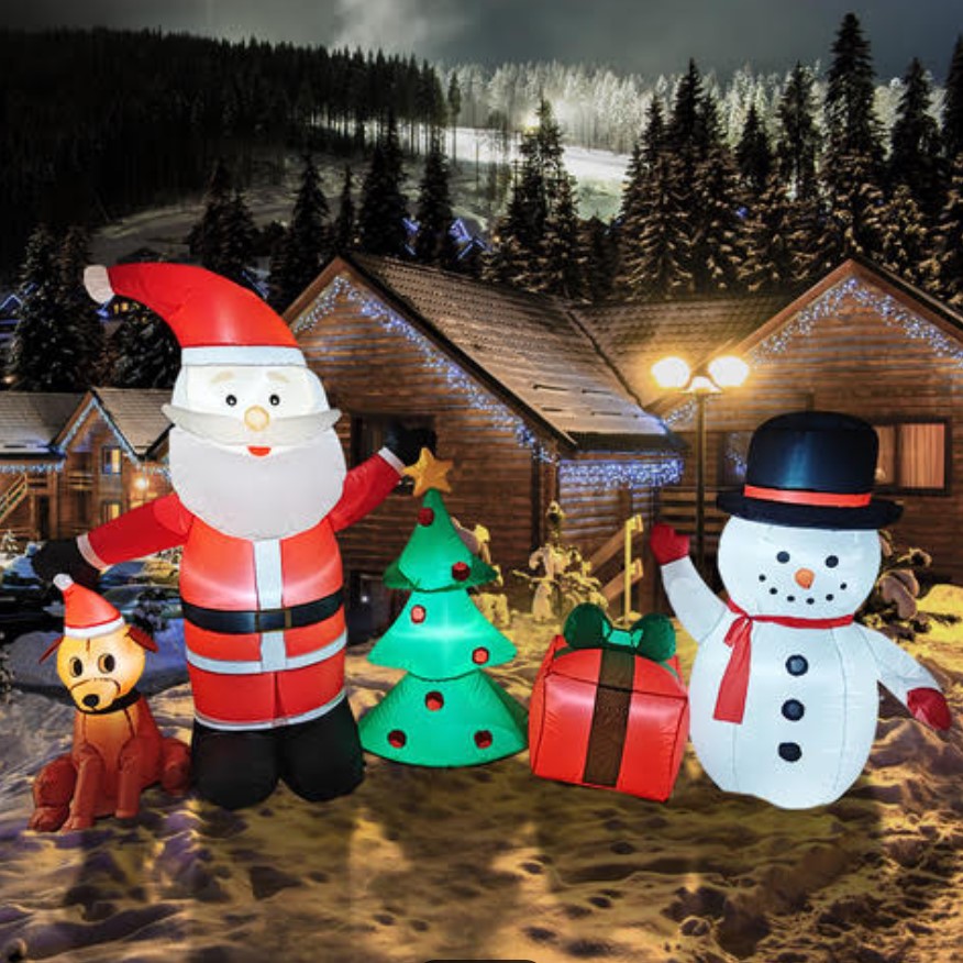 Dmuchana dekoracja świąteczna StarryLights 150 x 250 cm – Mikołaj, Bałwan, Choinka, Prezent i Piesek