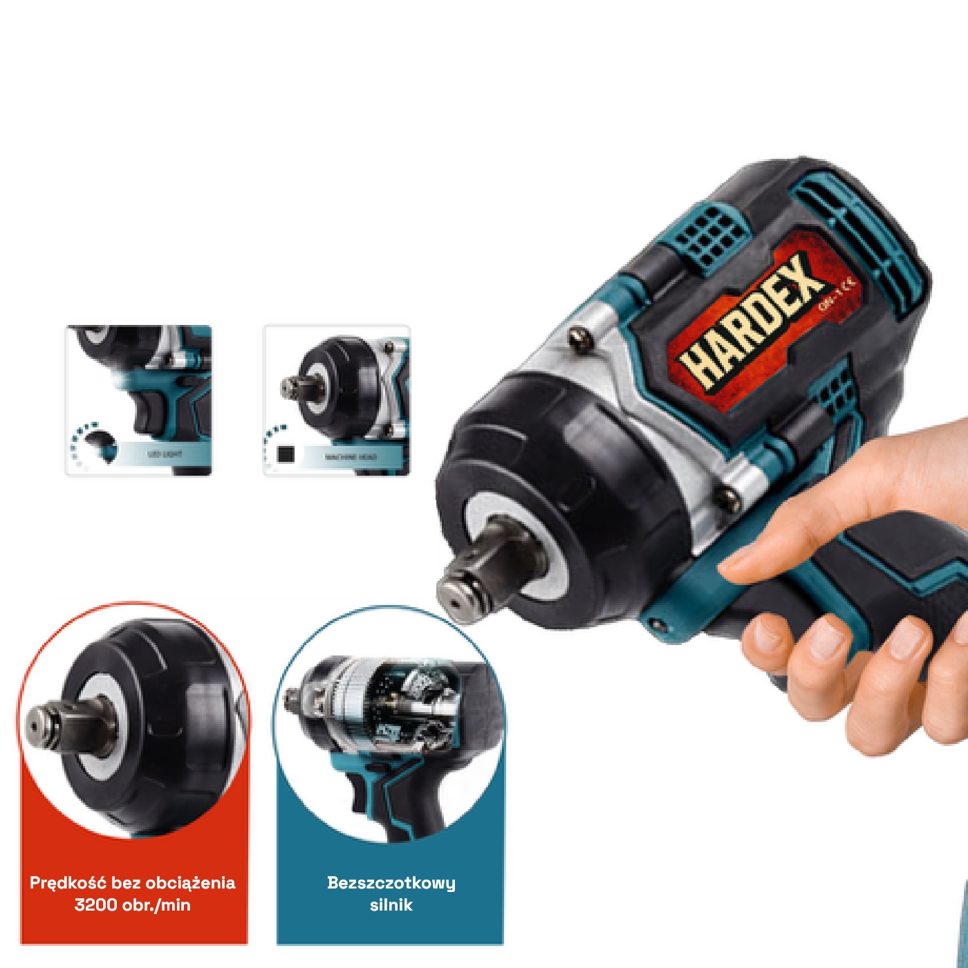 ✔ Klucz udarowy HARDEX Brushless 600 Nm