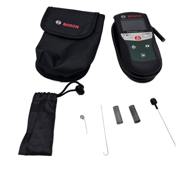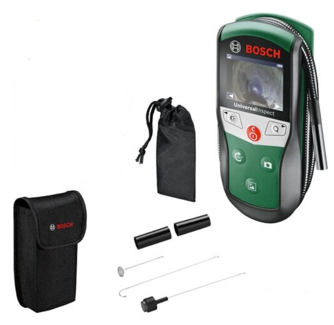 Poręczna kamera inspekcyjna UniversalInspect firmy BOSCH z elastycznym ramieniem o długości 95 cm, które pozwala na dotarcie do trudno dostępnych miejsc np. schowane części silnika, układy kanalizacyjne za ścianą i tym podobne.