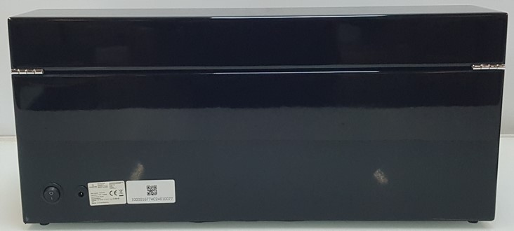 dekoracyjny design z naniesioną na całej powierzchni czarną powłoką lakierową typu piano, polerowaną na wysoki połysk, oraz z dużą witryną