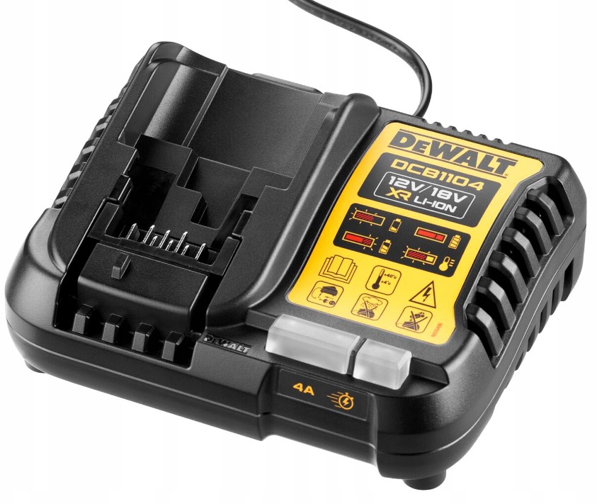 Dewalt DCB1104 to innowacyjna wielonapięciowa ładowarka, zaprojektowana specjalnie dla użytkowników elektronarzędzi akumulatorowych z serii Dewalt 18V i Dewalt 12V.