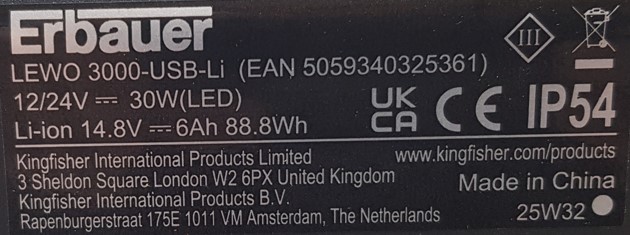 Lampa warsztatowa Erbauer LEWO 3000-Li