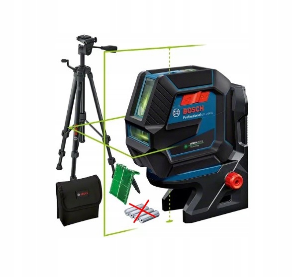 Zielona wiązka lasera zapewnia lepszą widoczność poziomych i pionowych linii laserowych