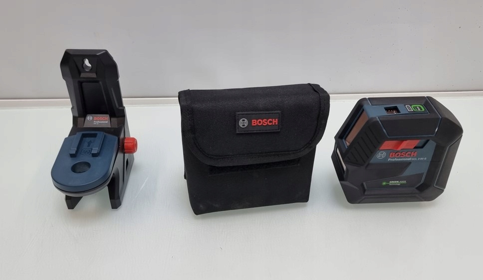 W zestawie statyw, odbiornik laserowy, uchwyt z magnesem oraz etui na laser