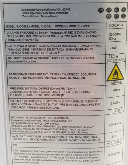 Idealny do usuwania nadmiaru wilgoci i kontrolowania wilgoci i kondensacji. Posiada automatyczne wyłączanie, uchwyt do przenoszenia, wyświetlacz LED i wielokrotnego użytku filtr powietrza. Posiada 24-godzinny programowalny timer. Posiada zbiornik na wodę o pojemności 5 litrów i wyłącza się, gdy zbiornik jest pełny. Nadaje się do średniej wielkości pomieszczeń do 24 m².