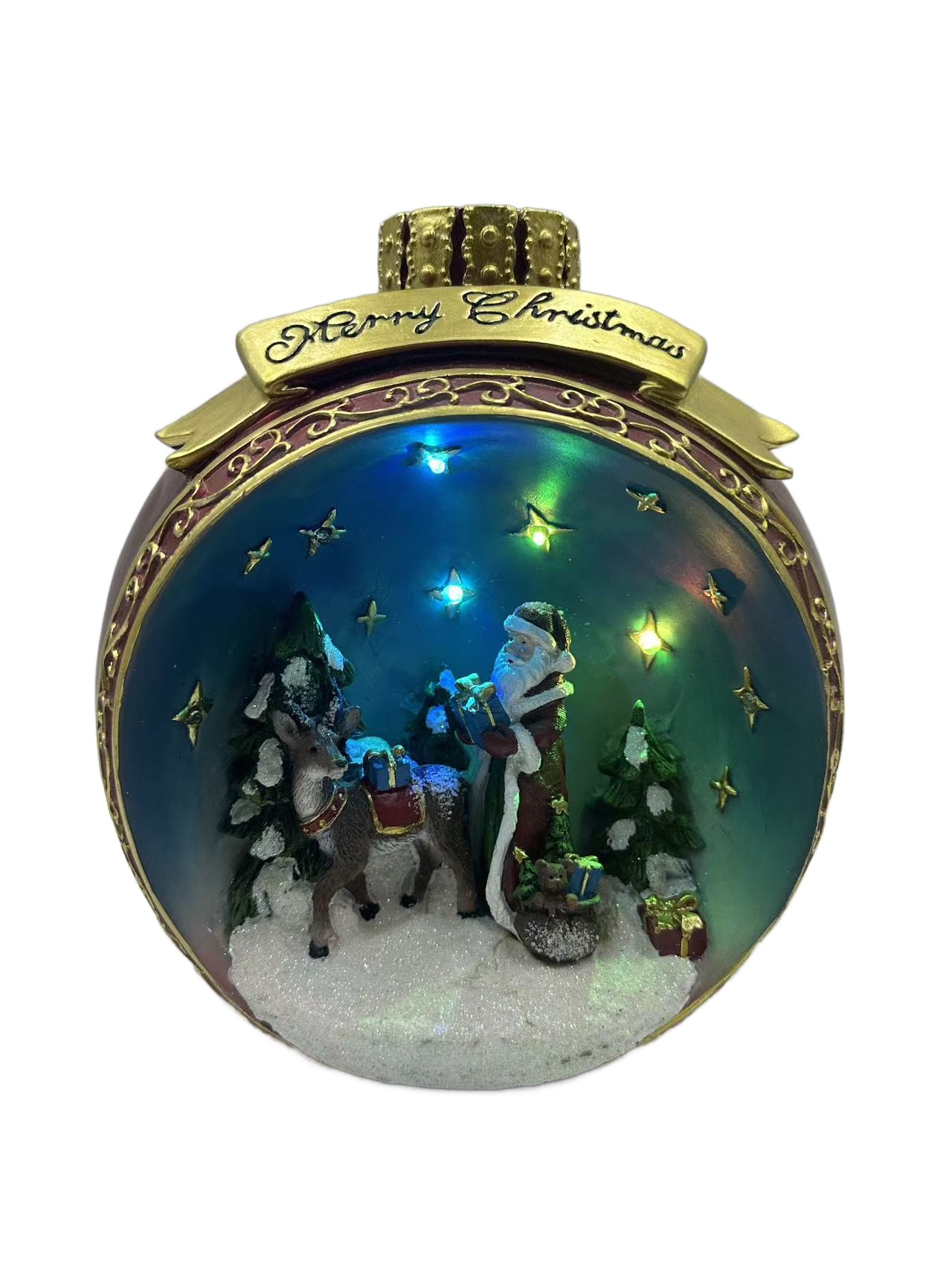 Zanurz się w świątecznym nastroju z urokliwą pozytywką StarryLights – Kula Śnieżna bombka! Ta niezwykła dekoracja w kształcie bombki przedstawia zimową scenkę z Mikołajem i reniferem w otoczeniu ośnieżonych drzewek. Całość dopełniają kolorowe światełka LED oraz delikatna melodia świąteczna, które wprowadzają ciepło i magię Bożego Narodzenia.