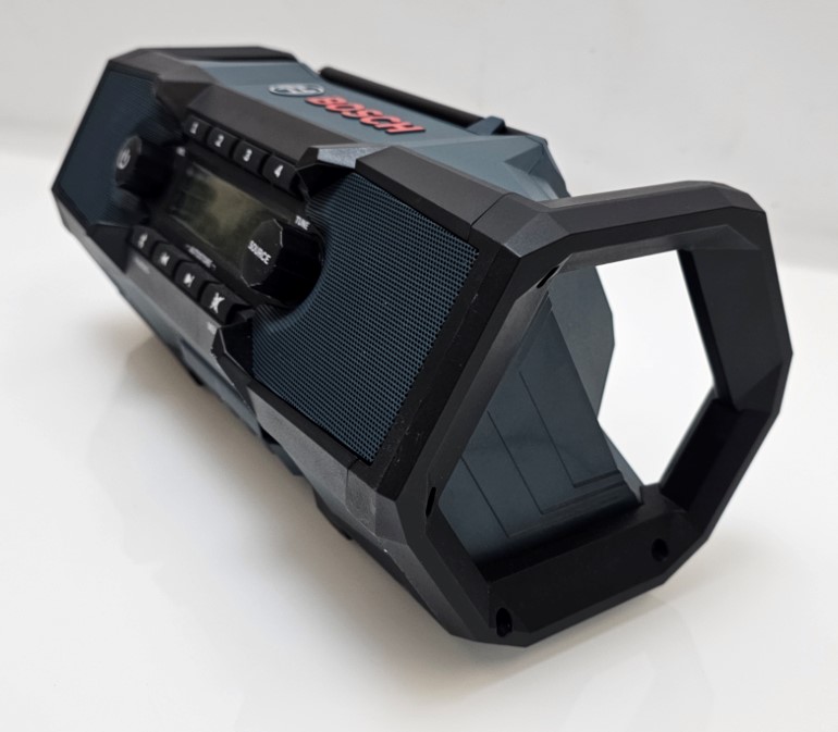 Wbudowane gniazdo do zasilania akumulatorowego pozwala na korzystanie z radia bez konieczności podłączania do zasilania sieciowego 220V/230V – radio może być zasilane tylko i wyłącznie akumulatorami litowo-jonowych 18V firmy BOSCH z linii Professional i maksymalnej pojemności 8 Ah.