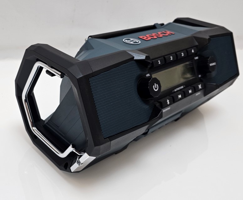 Wysokiej jakości radio stereofoniczne FM z 8 miejscami pamięci stacji radiowych, radio może być zasilane napięciem sieciowym 230V (poprzez zasilacz 12V znajdujący się w wyposażeniu), bądź akumulatorem litowo-jonowym firmy BOSCH o napięciu 18V.