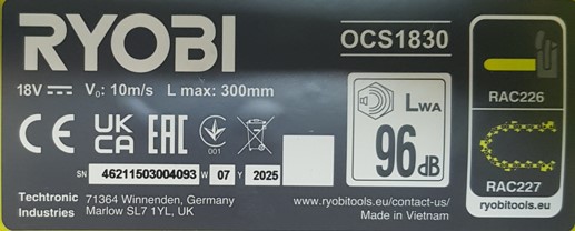 RYOBI OCS1830 Piła łańcuchowa bezszczotkowa 18V