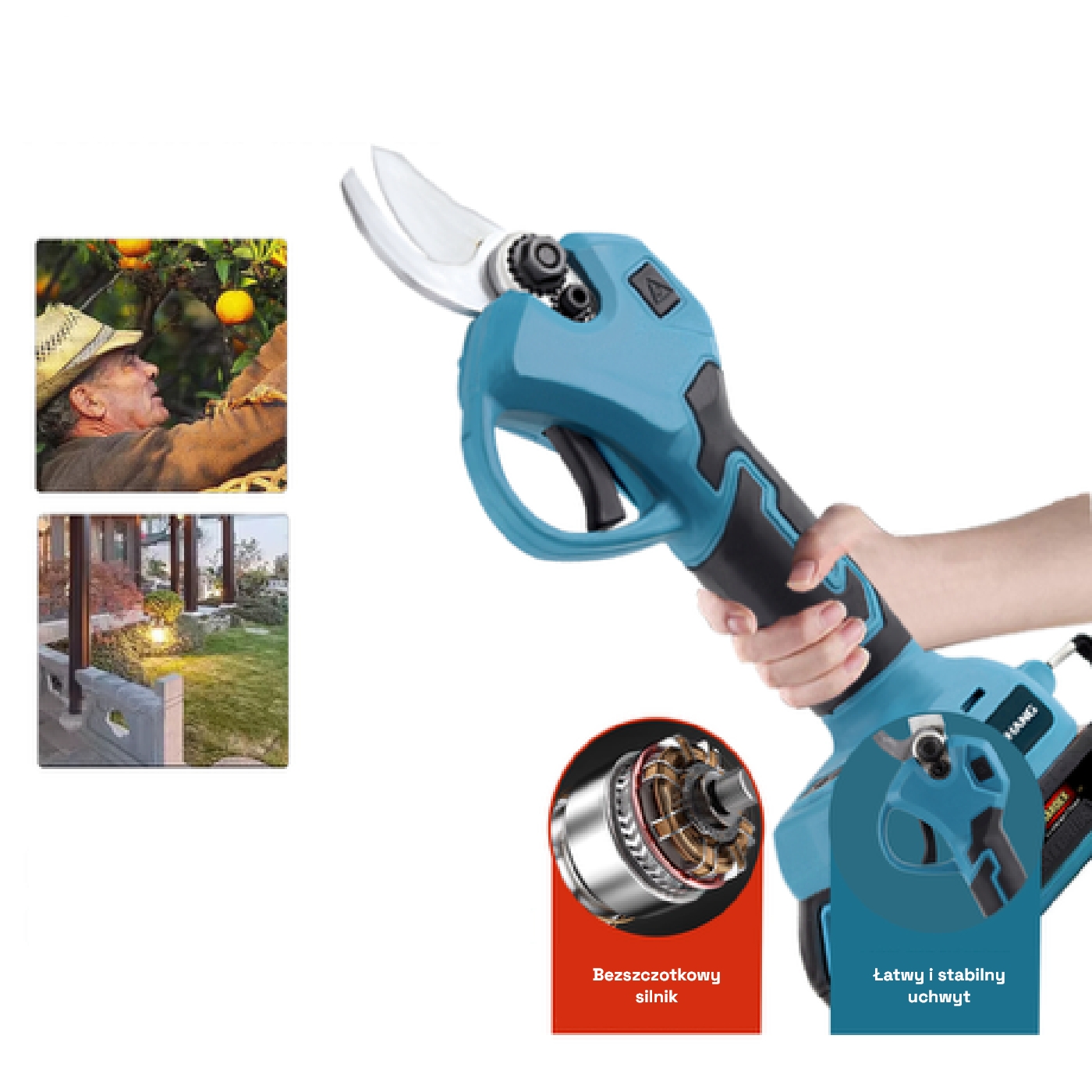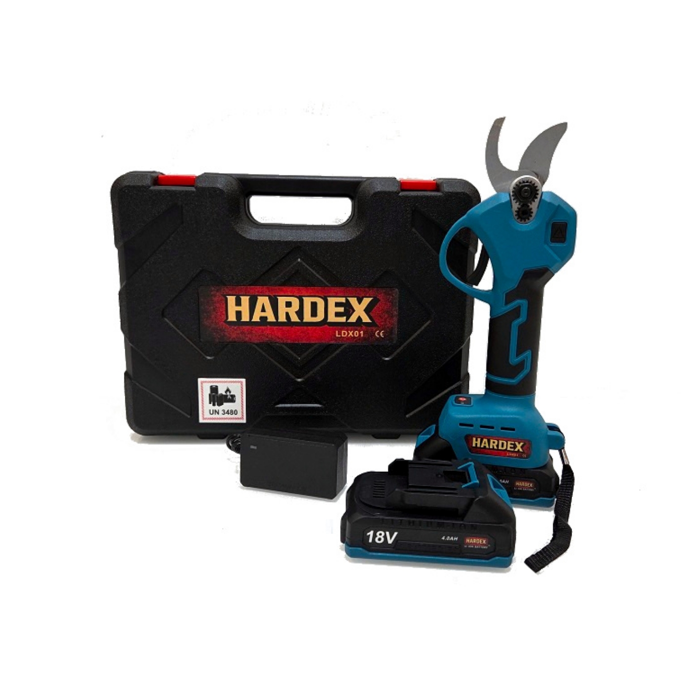 Sekator elektryczny bezszczotkowy HARDEX 30mm 500W do gałęzi krzewów 2 x aku 4.0Ah