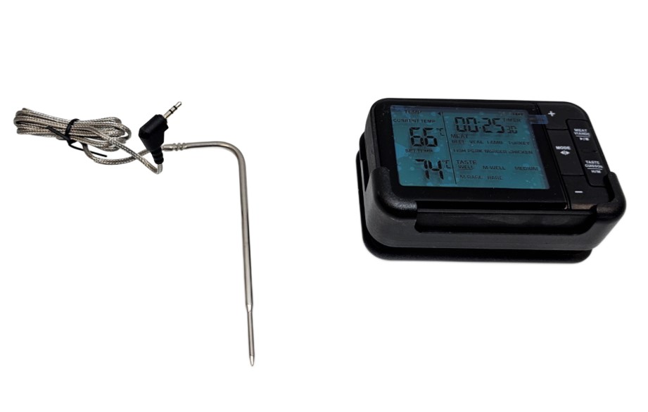 Czujnik pieczenia do grilla GoodHome pozwoli Ci przygotować idealnie wysmażoną potrawę. Sondę w pierwszej kolejności powinieneś umieścić w mięsie, a następnie wybrać temperaturę.