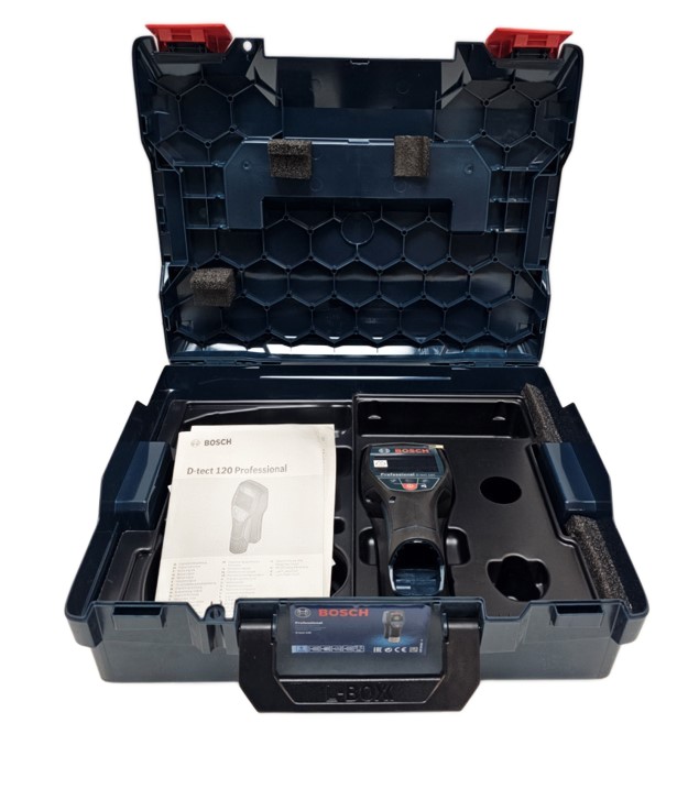 Bosch Wallscanner D-tect 120 (0601081308) to zaawansowany detektor, który umożliwia precyzyjne wykrywanie przewodów pod napięciem, metali, elementów drewnianych oraz pustych przestrzeni. Dzięki innowacyjnej technologii Center Finder urządzenie wskazuje środek wykrytego obiektu, a pomiar punktowy zapewnia większą dokładność niż klasyczne skanowanie powierzchniowe.