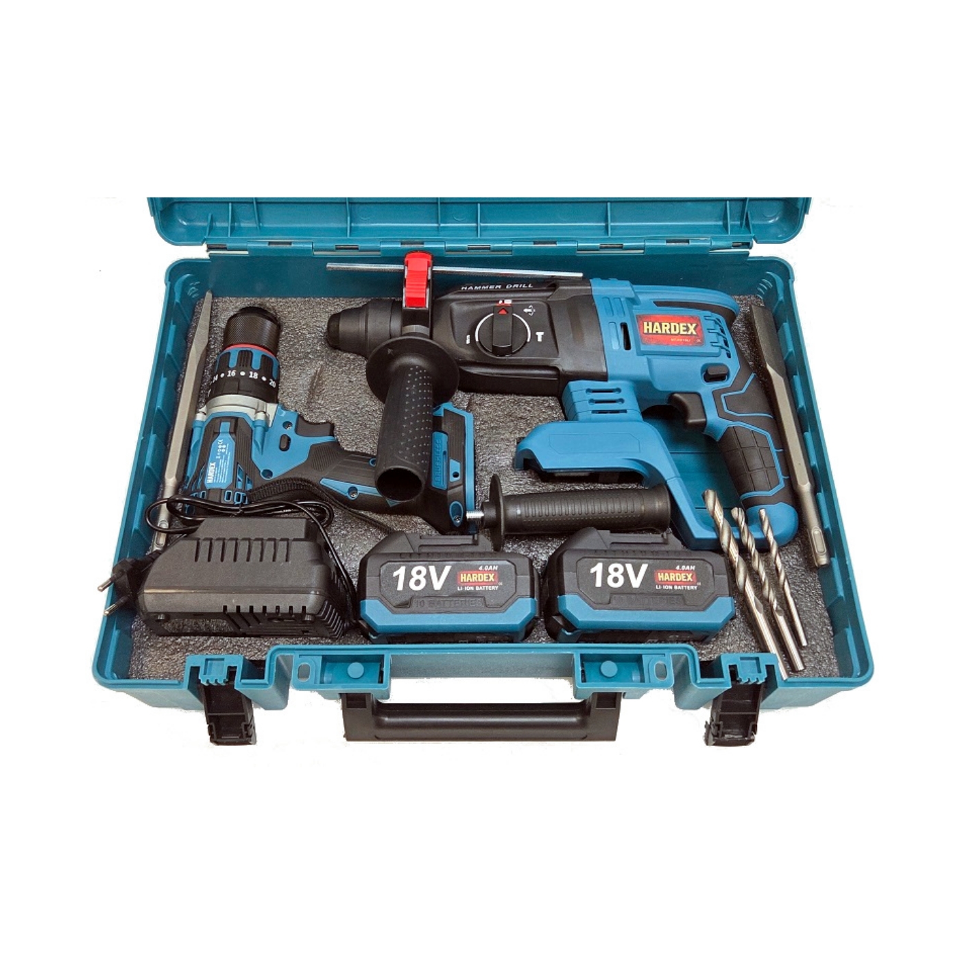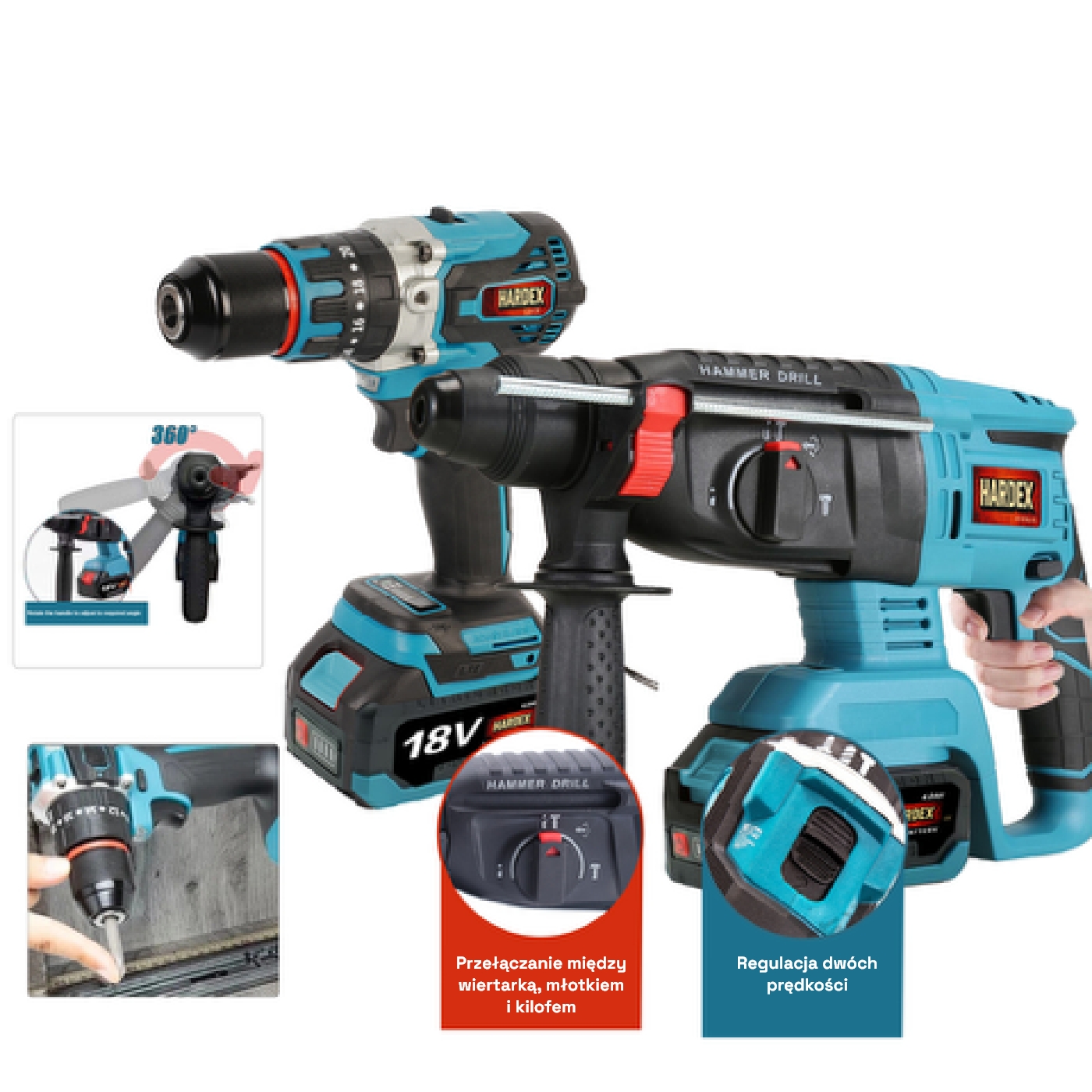 Zestaw 2w1 HARDEX – Wiertarka udarowa 13mm Brushless + Młotowiertarka 26mm 2 x aku 4,0 Ah