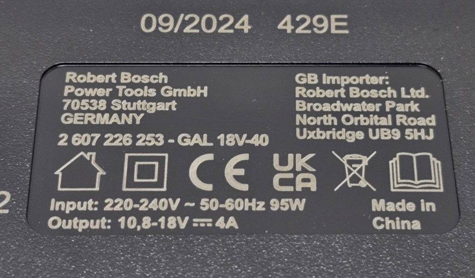 Ładowarka GAL 18V-40 jest przystosowana do ładowania akumulatorów z niebieskiej linii Bosch Professional 18V. Ładowanie akumulatora 18V 4.0 Ah trwa 65 min. do 100%. Ładowarka została wyposażona w 2 diody: czerwona – wskaźnik błędu i zielona – wskaźnik ładowania.