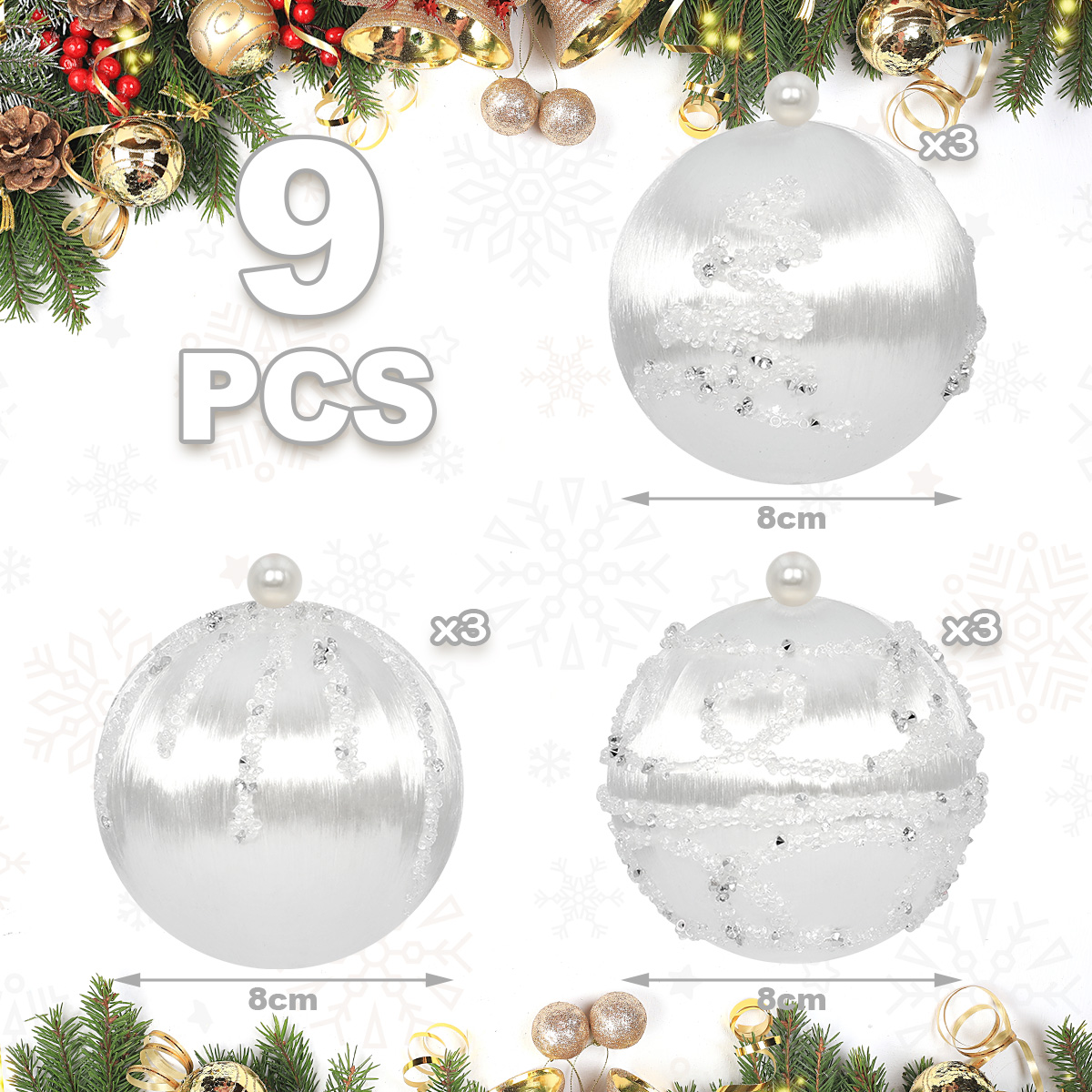 - Zawartość zestawu: 9 bombek o jednolitej kolorystyce i eleganckim wykończeniu (błyszczące, perłowe, satynowe).