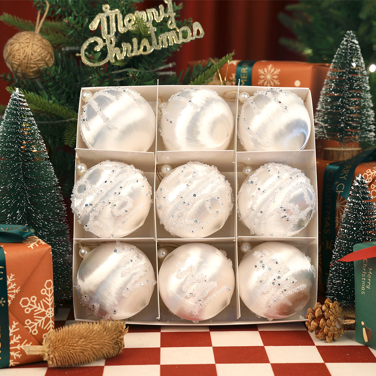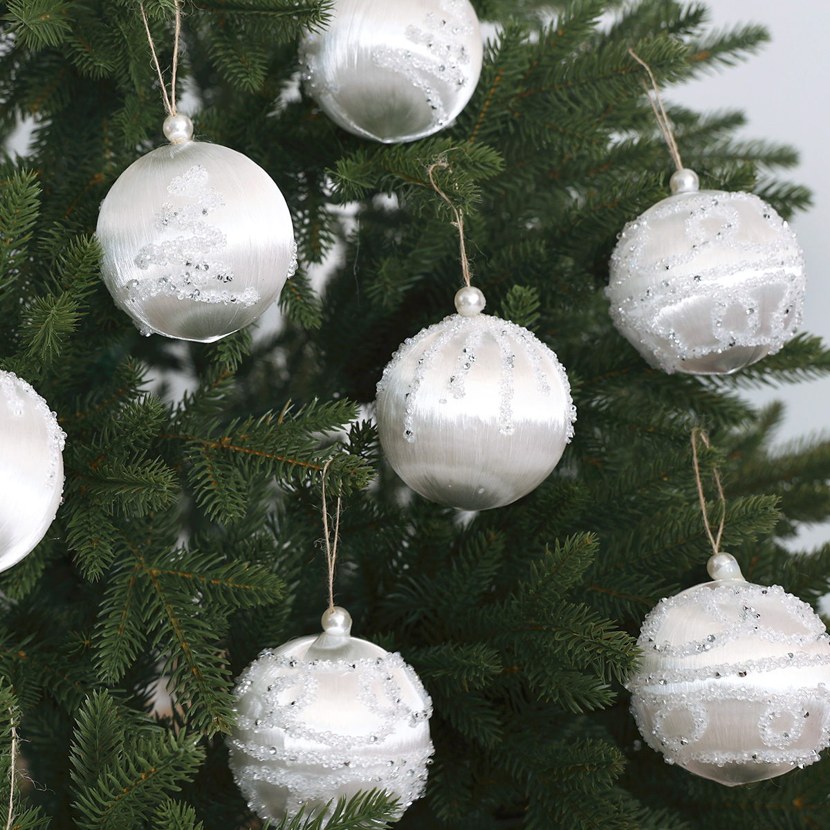 Zestaw bombek choinkowych StarryLights białe – eleganckie ozdoby świąteczne