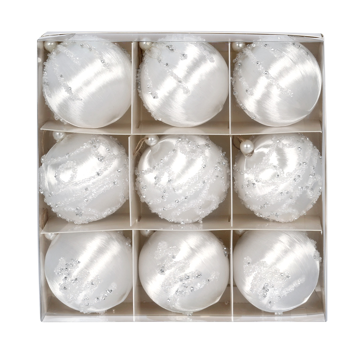 - Zestaw 9 bombek choinkowych StarryLights w kolorze białym,