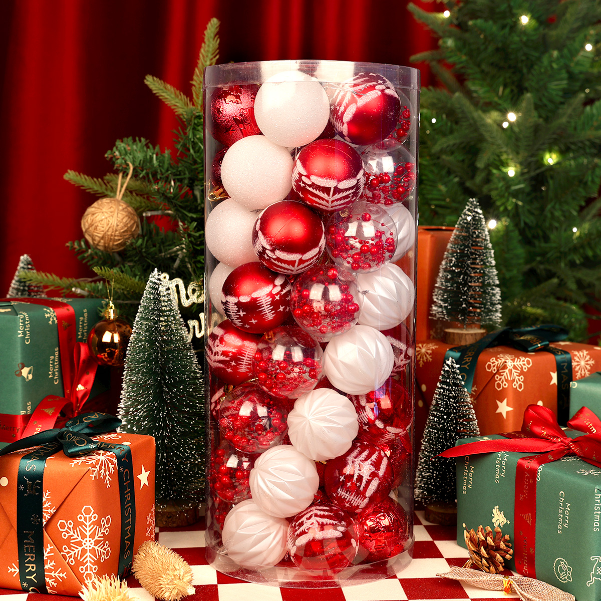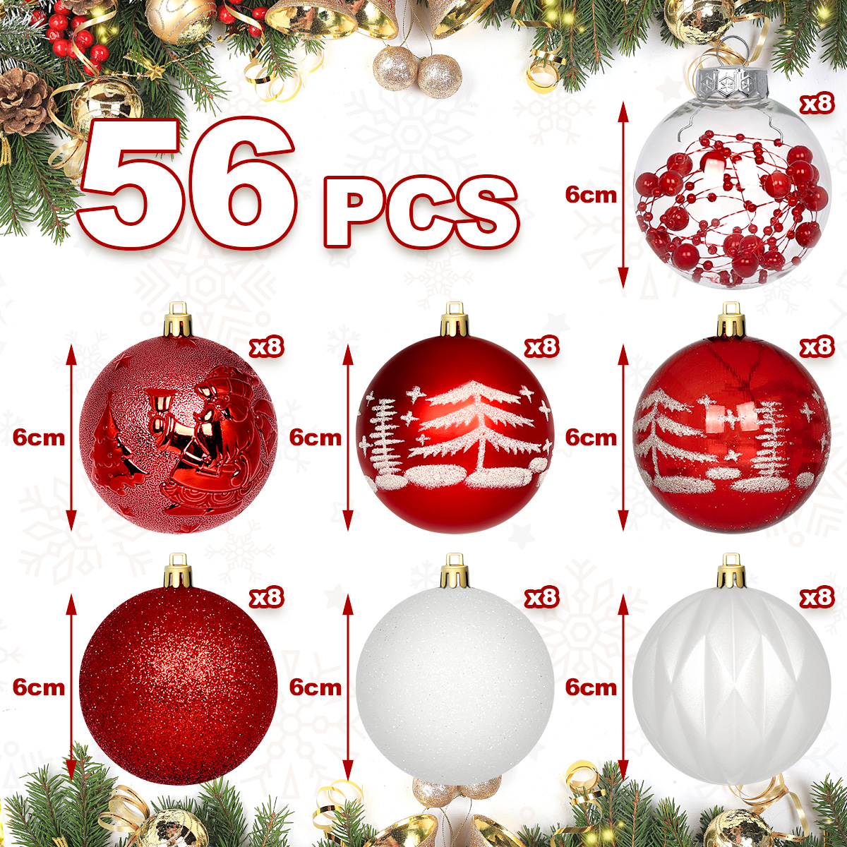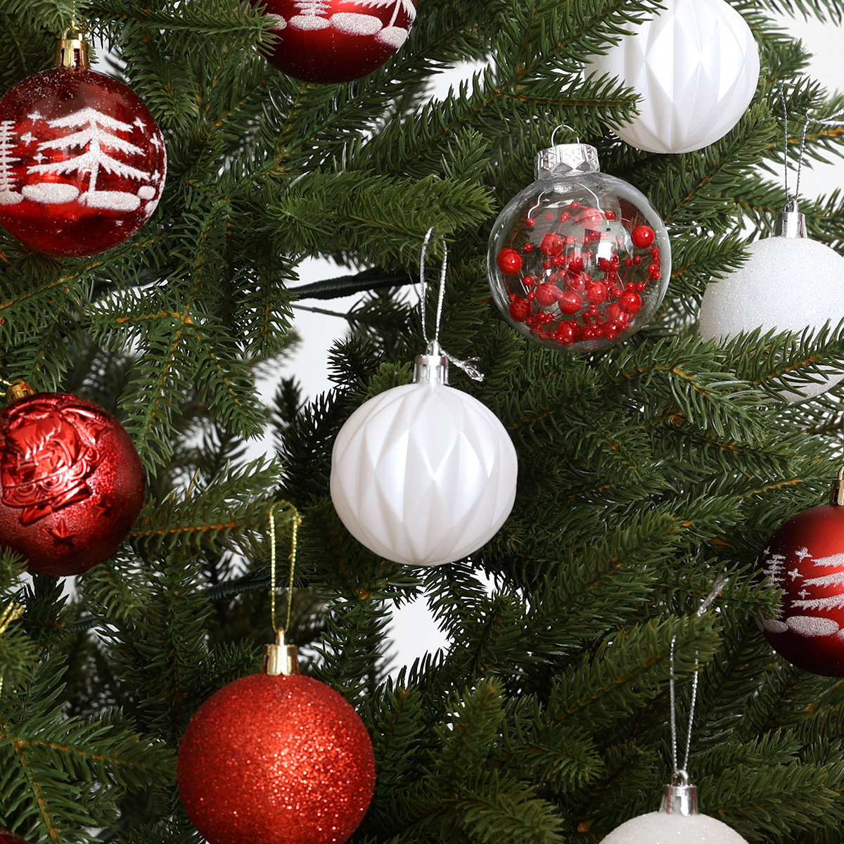 - Zawartość zestawu: Bombki w różnych wzorach – gładkie, malowane, brokatowe i z motywami świątecznymi, Połączenie błyszczącego, matowego i perłowego wykończenia.