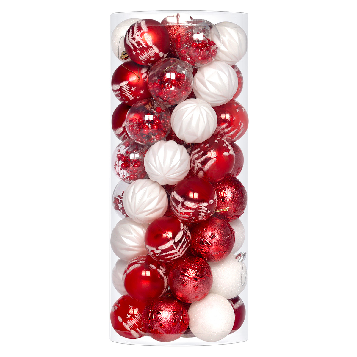 Zestaw bombek choinkowych StarryLights czerwono–białe – eleganckie ozdoby świąteczne