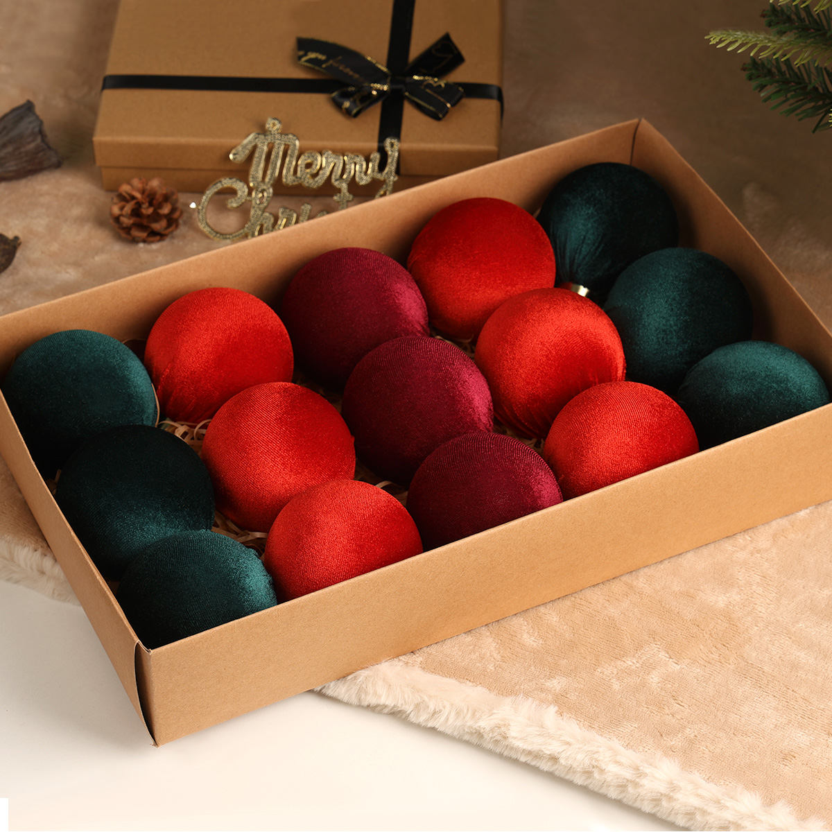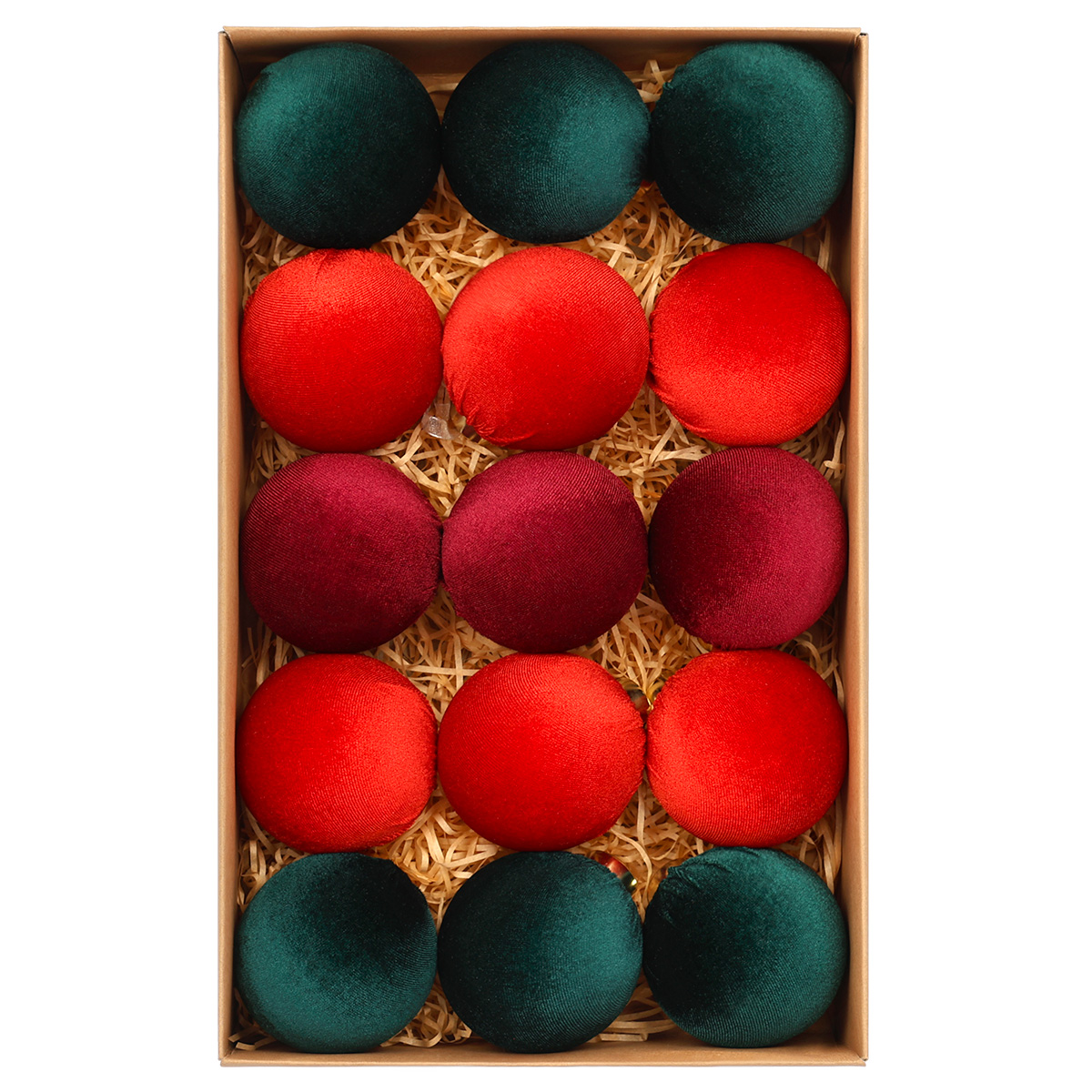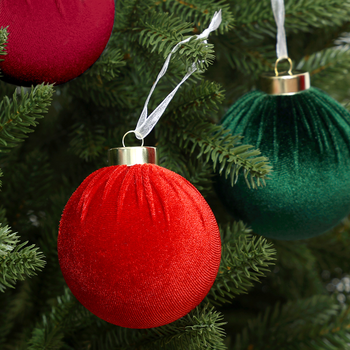 Zestaw bombek choinkowych StarryLights – welurowe bombki w kolorach czerwonym i zielonym