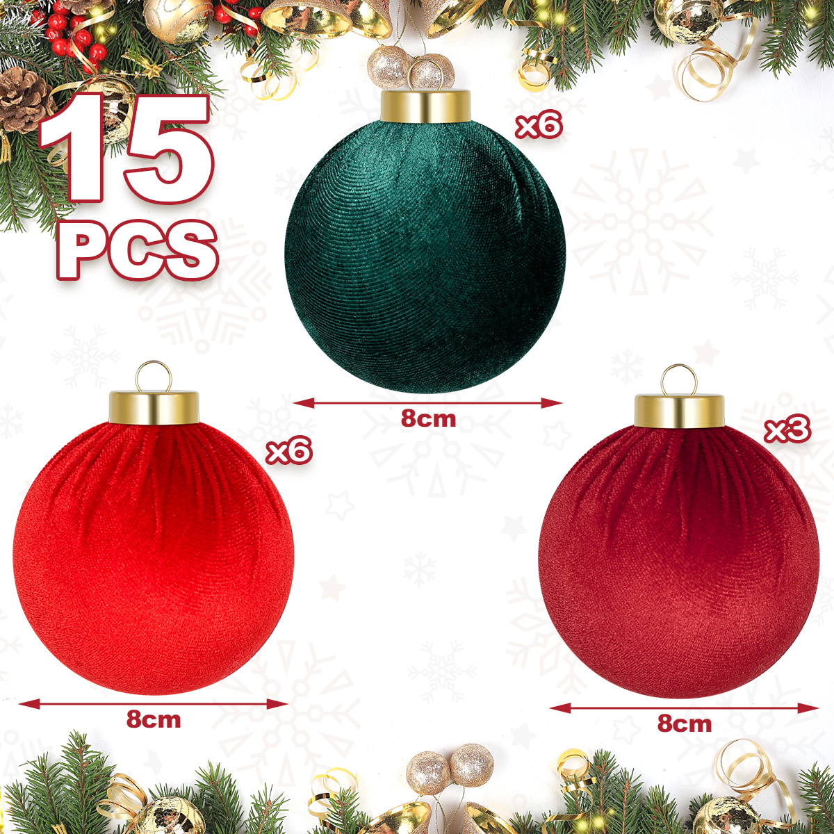Stwórz elegancką i ciepłą atmosferę świąt z bombkami StarryLights 1461! To zestaw stylowych, welurowych bombek w klasycznych kolorach czerwieni i butelkowej zieleni. Ich miękka, matowa powierzchnia o aksamitnym wykończeniu nada Twojej choince wyjątkowego charakteru – pełnego elegancji i świątecznego uroku.