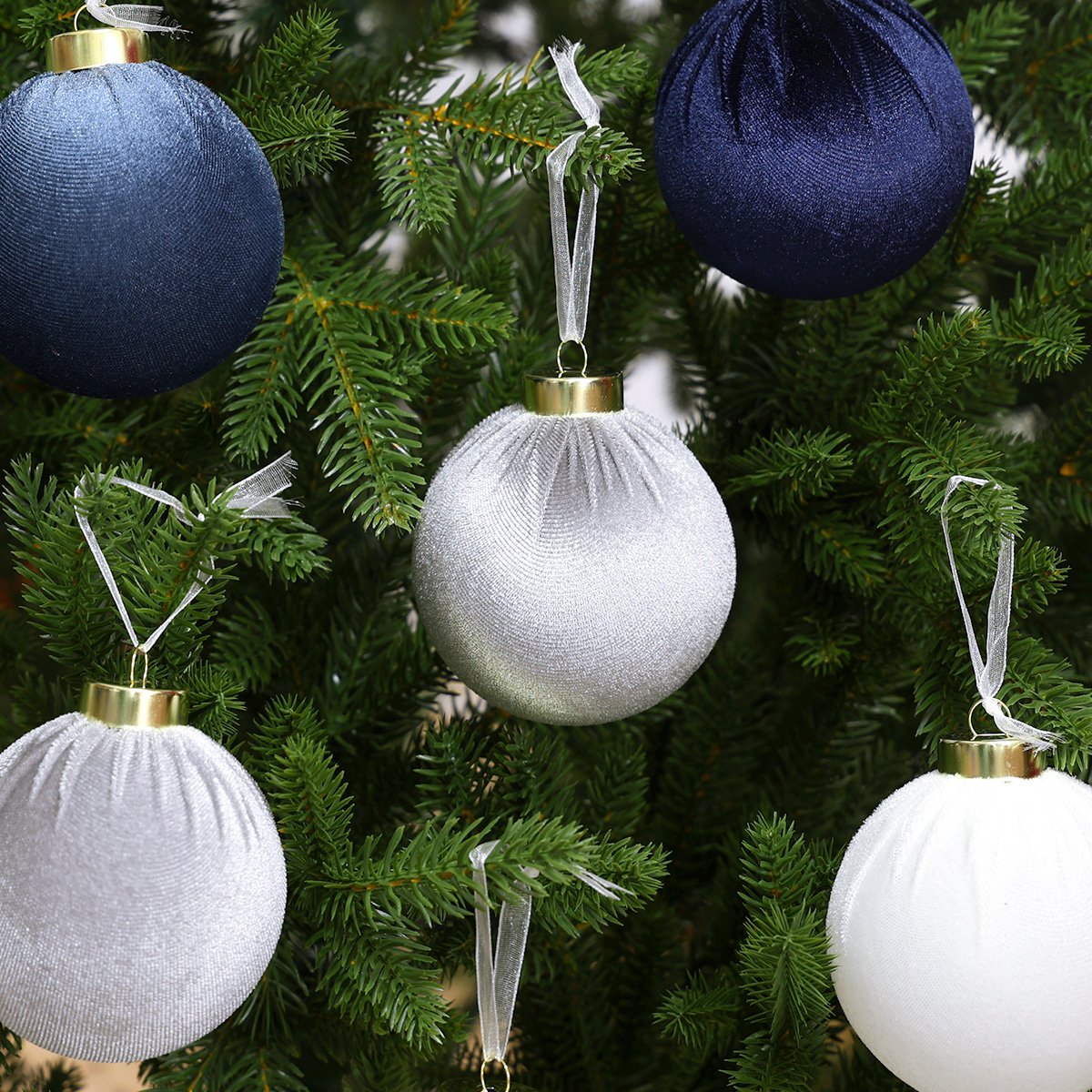 Zestaw bombek choinkowych StarryLights welurowe bombki w kolorach granatowym i srebrnym