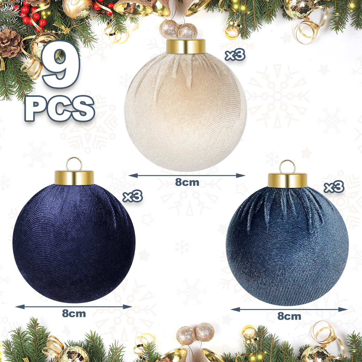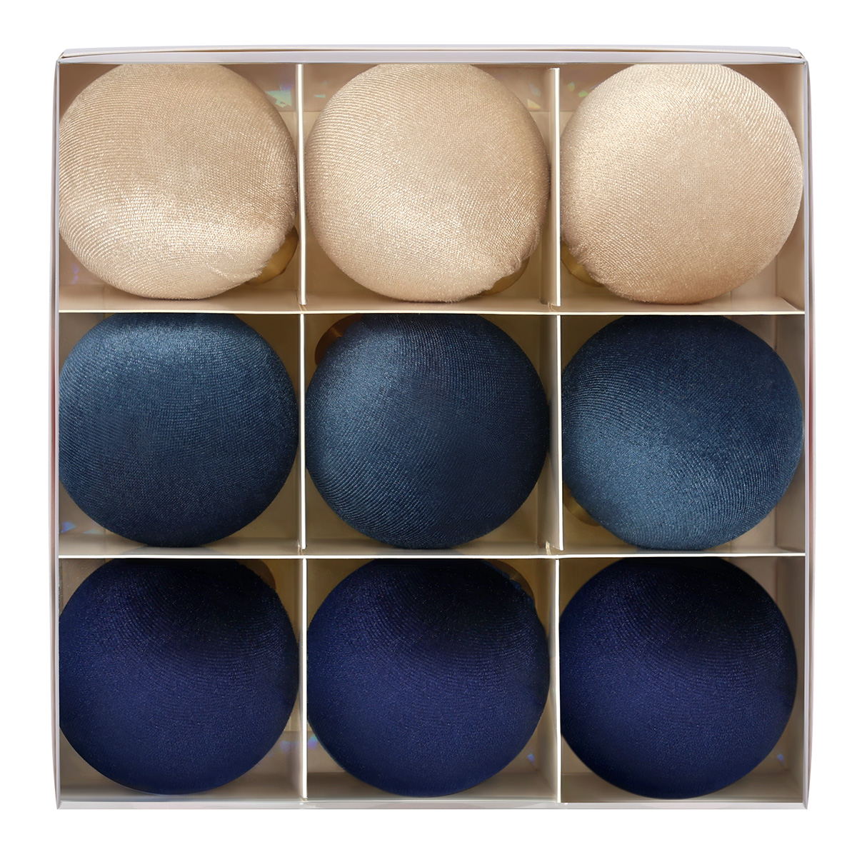 Zestaw bombek choinkowych StarryLights welurowe bombki w kolorze granatowym i beżowym