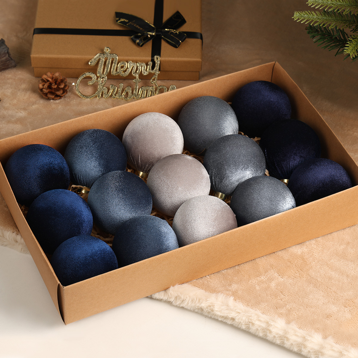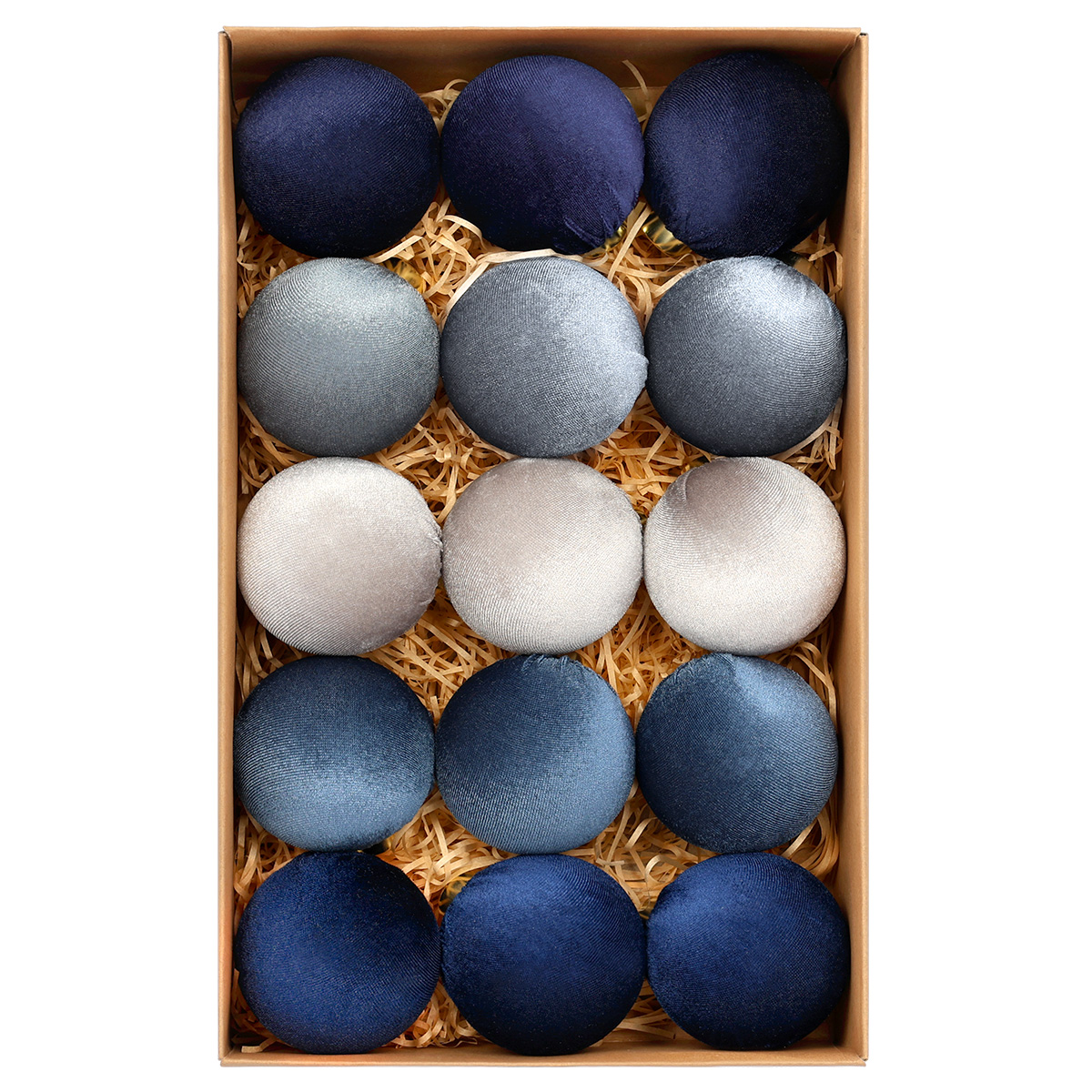 Zestaw bombek choinkowych StarryLights – welurowe bombki w odcieniach niebieskiego i srebrnego