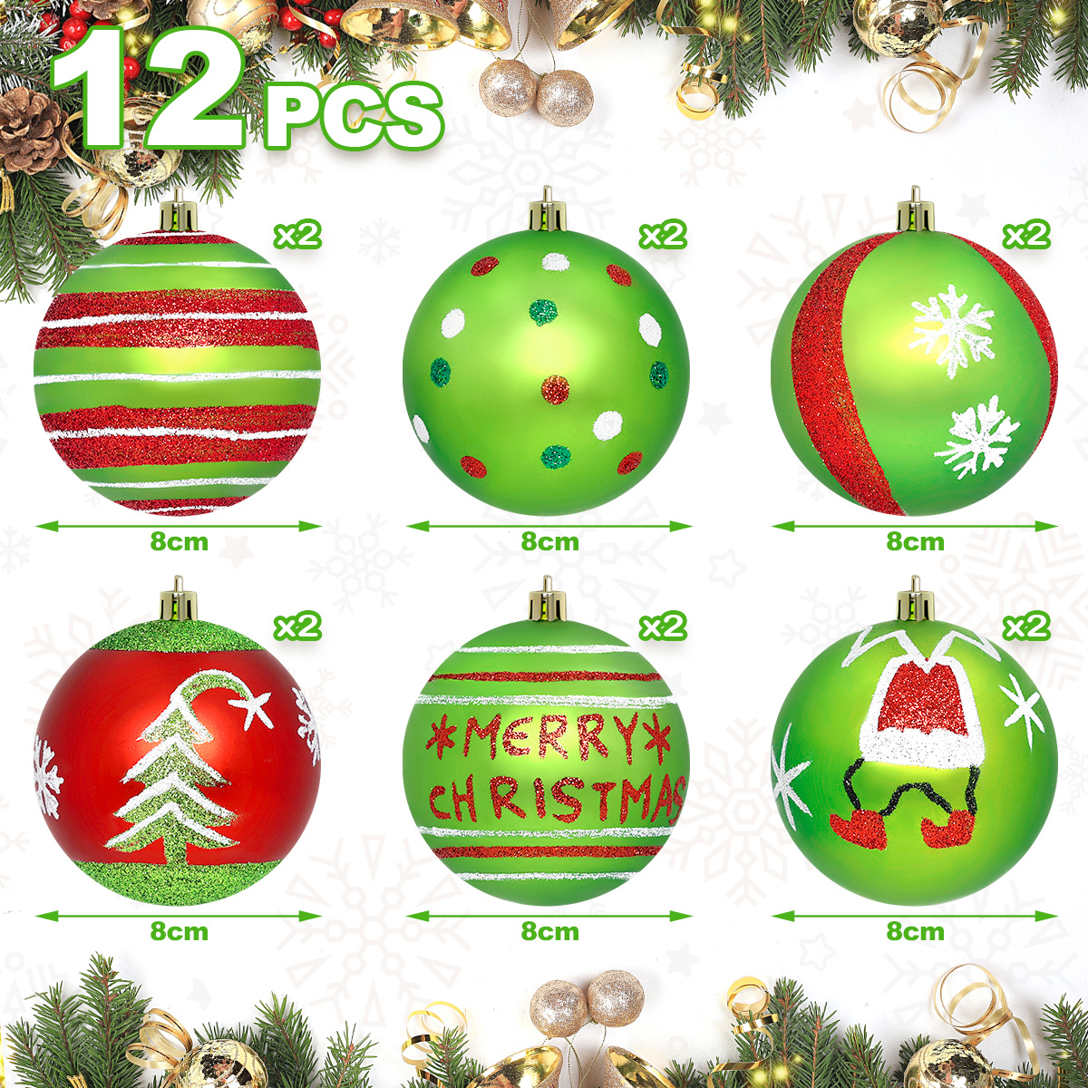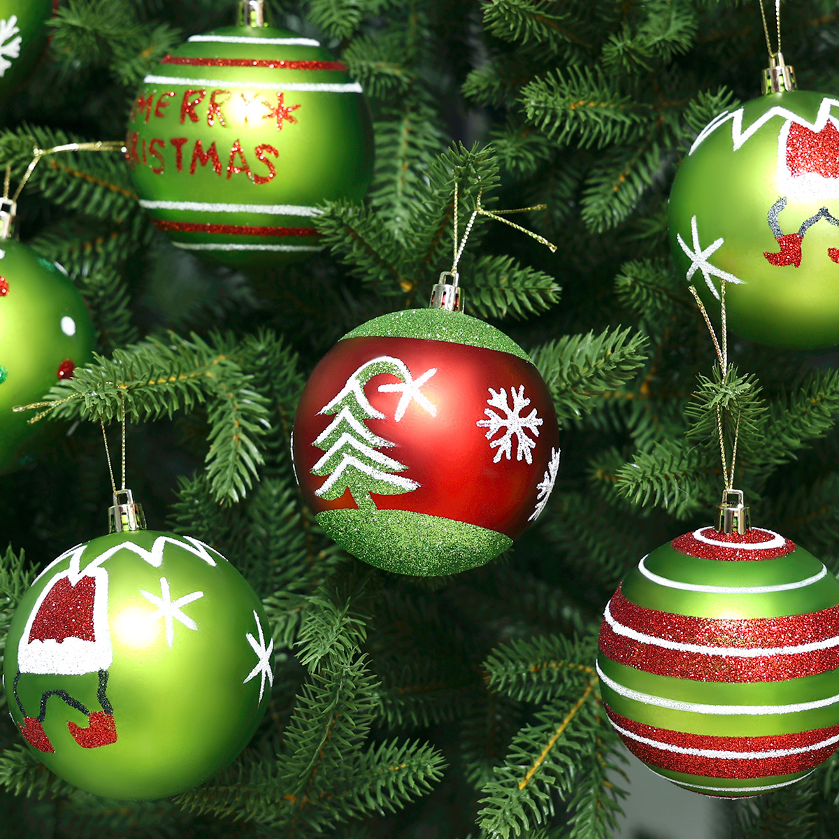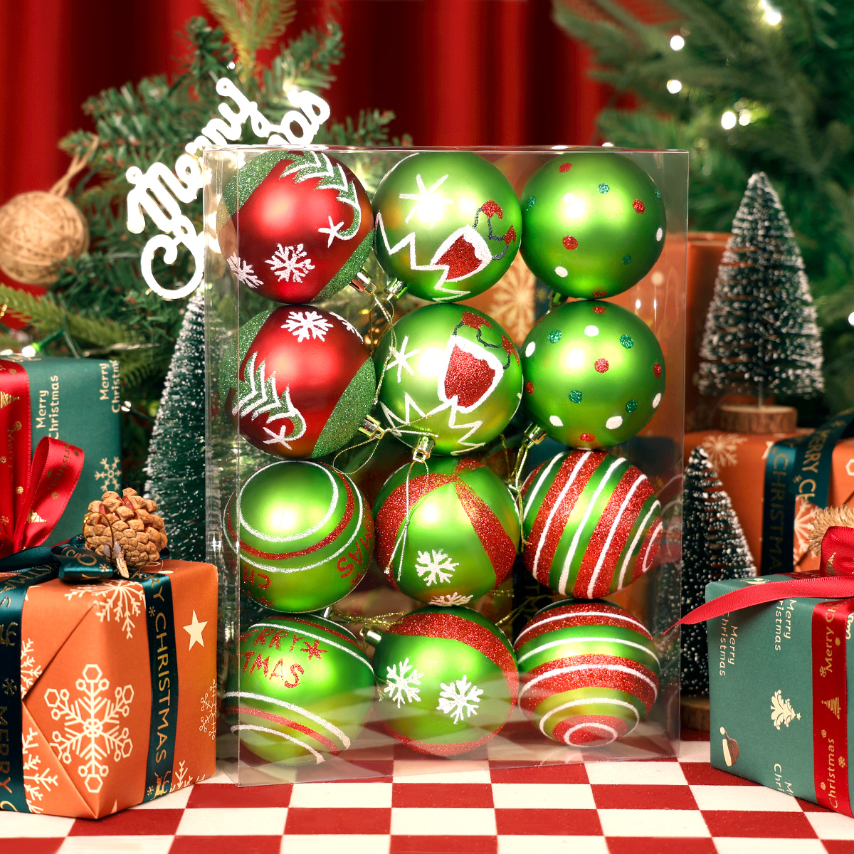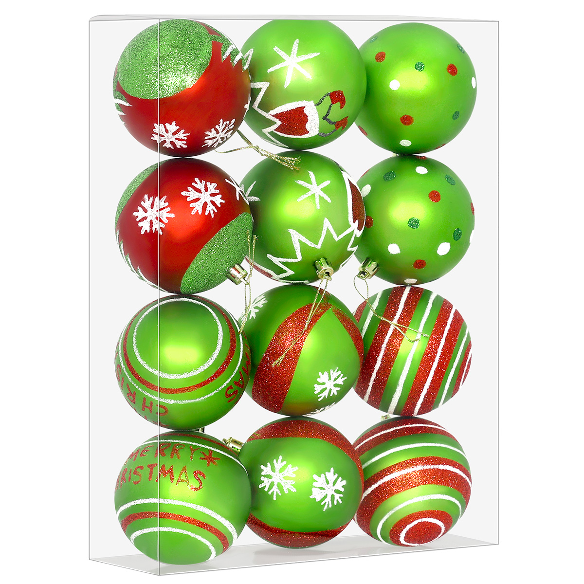 Wprowadź do swojego domu prawdziwie radosny, świąteczny nastrój z bombkami StarryLights 1443! Zestaw ozdób w kolorach czerwieni i zieleni to klasyka Bożego Narodzenia, a urocze motywy – choinki, dzwoneczki, gwiazdki i napis Merry Christmas – sprawią, że Twoja choinka nabierze wyjątkowego charakteru i świątecznego uroku.