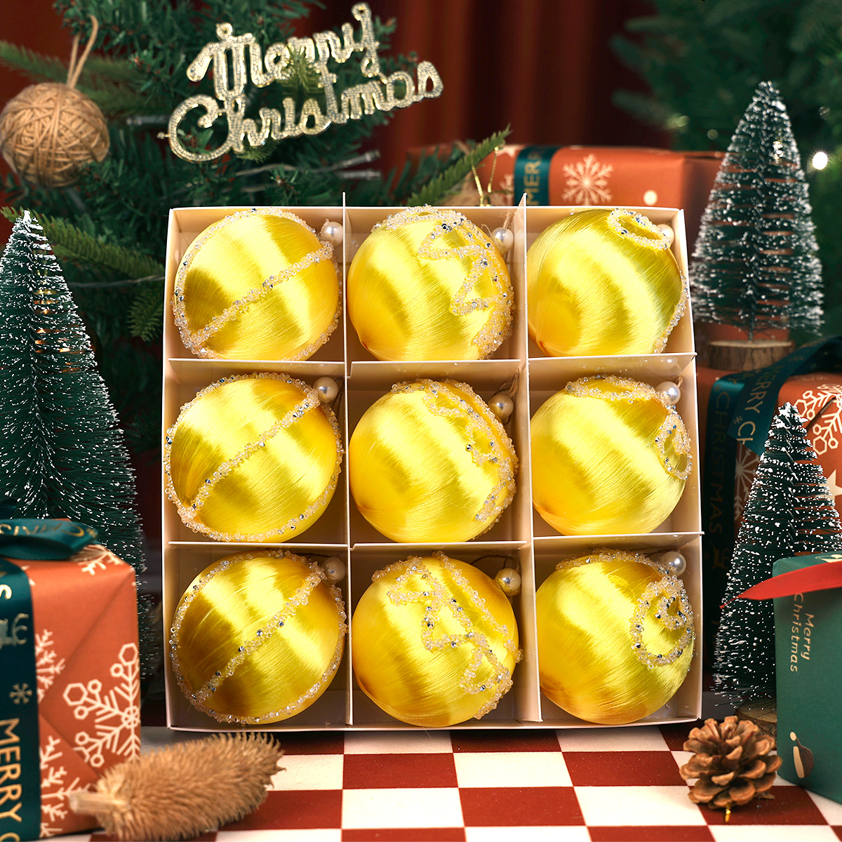 - Zawartość zestawu: 9 bombek w ozdobnym pudełku