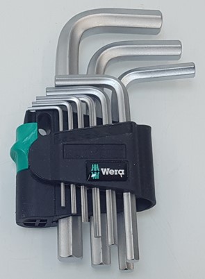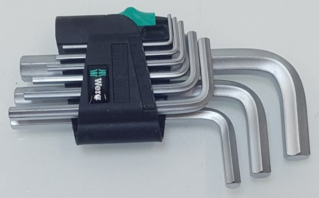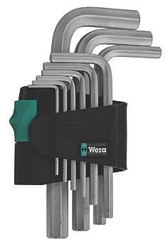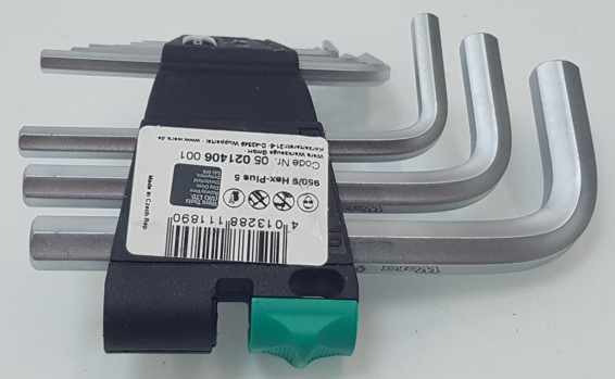 9 x 950 metrycznych kluczy imbusowych: 1,5 x 45 mm, 2 x 50 mm, 2,5 x 56 mm, 3 x 63 mm, 4 x 70 mm, 5 x 80 mm, 6 x 90 mm, 8 x 100 mm i 10 x 112 mm