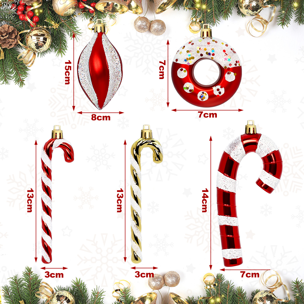 - Zawartość zestawu: komplet ozdób w kształcie lasek cukrowych