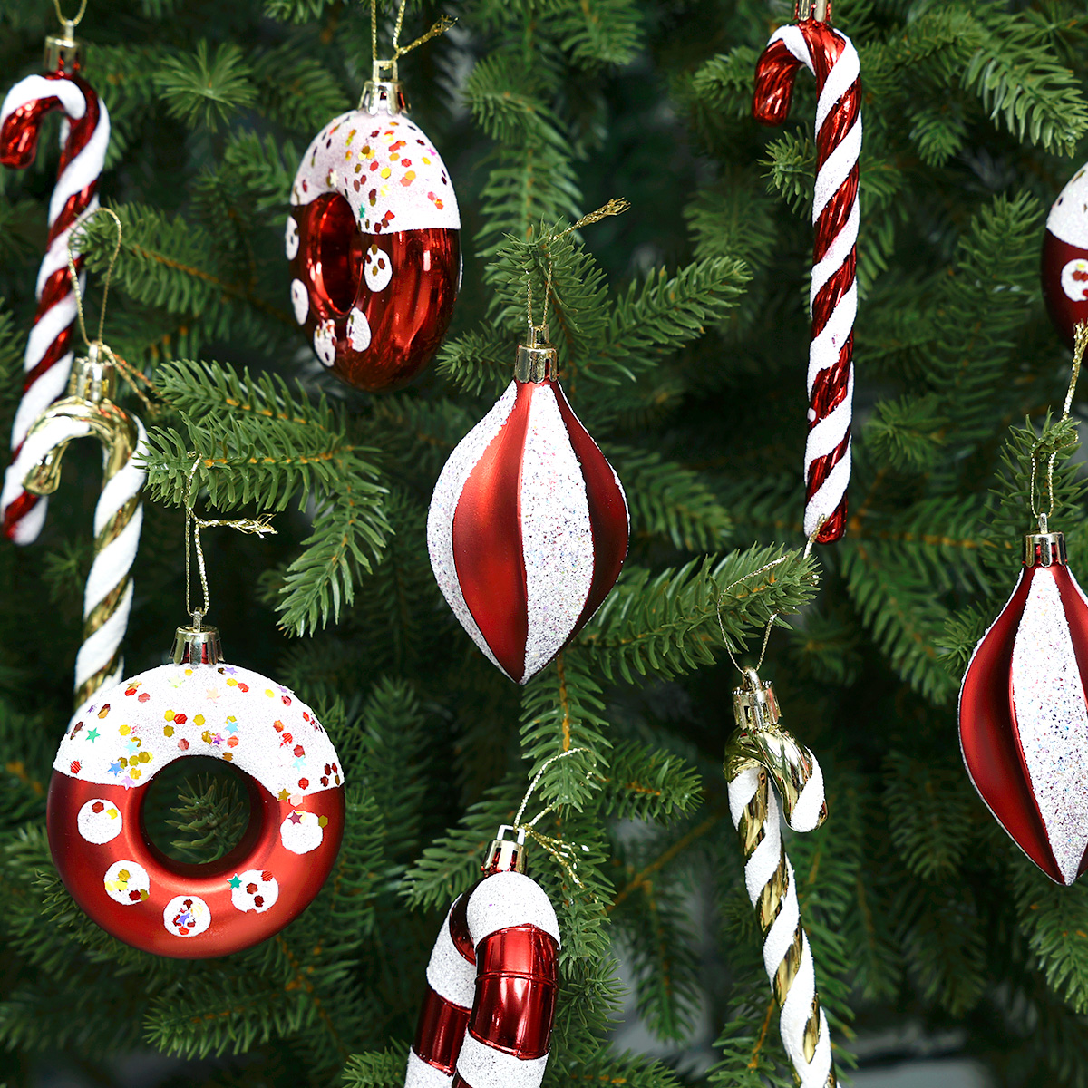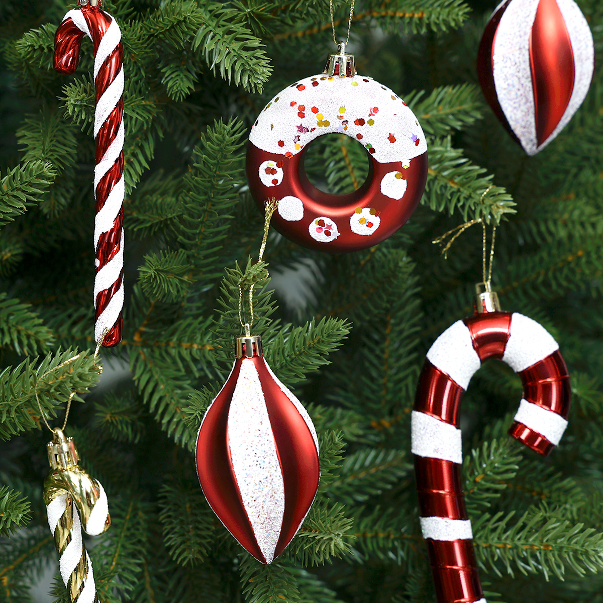 Zestaw ozdób choinkowych StarryLights – czerwono-białe laski cukrowe